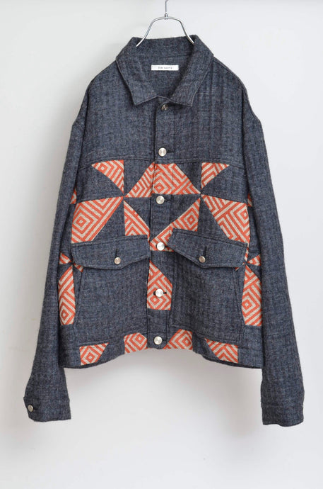HERRINGBONE LINEN WOOL QUILTED WORK BLOUSON