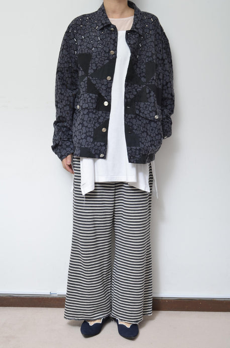FLOWER LACE QUILTED WORK BLOUSON_BLACK