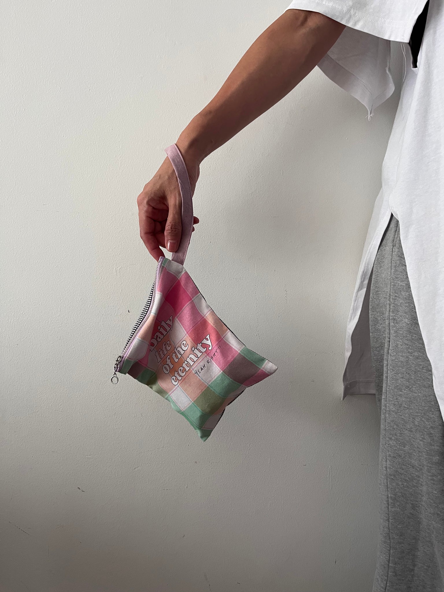 縦長タイプで、ストラップは手首に通せる長さなので、ちょっとしたお出かけにもお使いいただけます。
