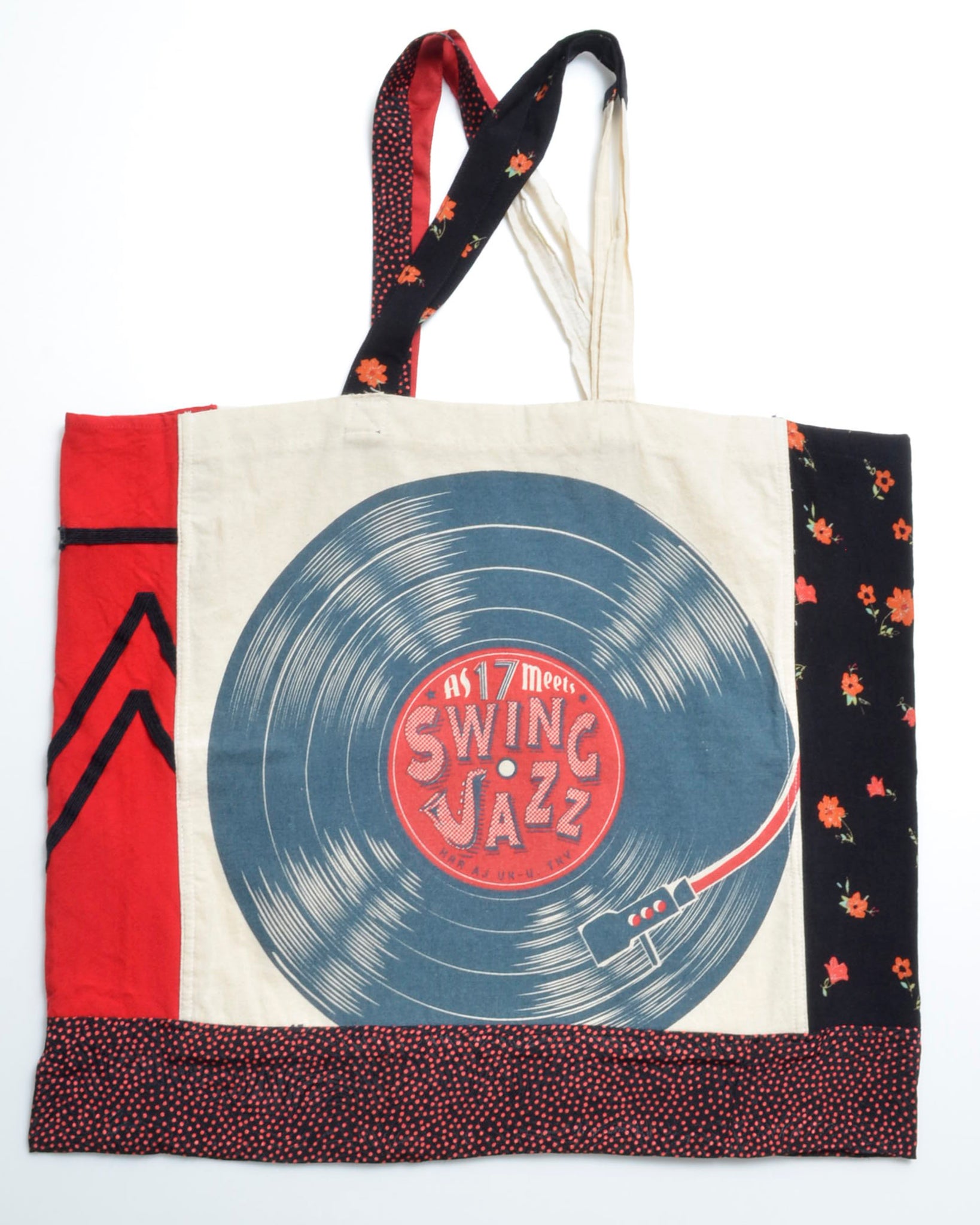 usedエコバッグを2枚使用し、組み合わせてできたメインの収納部分と、もともとエコバッグだった部分もそのまま収納としてご利用いただけます。