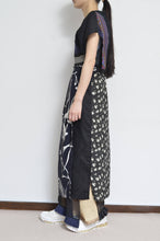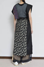 usedフローラルアイテムとusedメッシュタンク、デッドストックのバンダナ柄ジャガード地で仕立てたローブワンピース。
