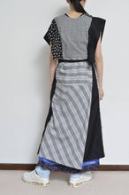 usedフローラルアイテムとusedメッシュタンク、デッドストックのバンダナ柄ジャガード地で仕立てたローブワンピース。
