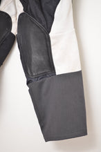 モーターサイクルパンツを使用し、その構造を残しながらスラックスがフュージョンしていくように仕立てたアイテム。