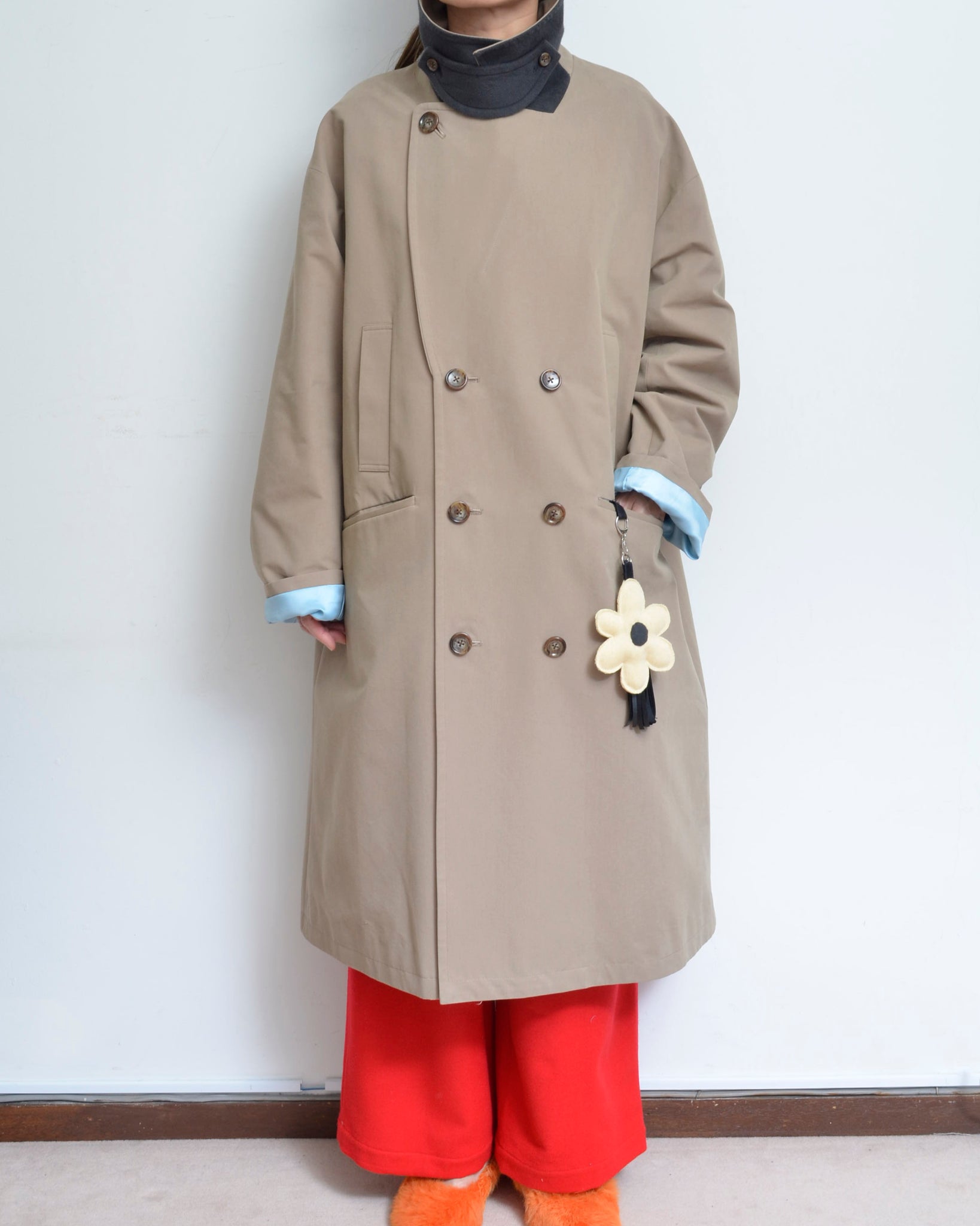 [26-27AW予約アイテム]Flower charm pea coat / peach skin