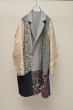 裏地の前身頃にはused花柄スカート、後ろ身頃にはフォトグラファー東海林広太のアートワークを昇華転写プリントしたサテン地を使用。