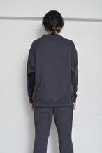 コットン/ナイロンのしっかりしたコーデュラ裏毛とusedスウェットで切り替えたプルオーバー。