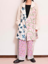 前パンツはused花柄スカート、usedスカーフをオリジナルパターンに合わせて裁断し配置。