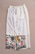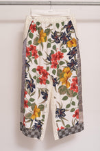 前パンツはused花柄スカート、usedスカーフをオリジナルパターンに合わせて裁断し配置。