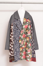 前身頃にusedスカーフ、used花柄スカートをオリジナルパターンに合わせて裁断し配置。