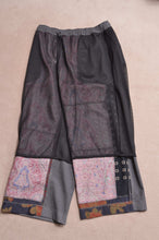 前パンツはusedスカーフ、used花柄スカートをオリジナルパターンに合わせて裁断し配置。
