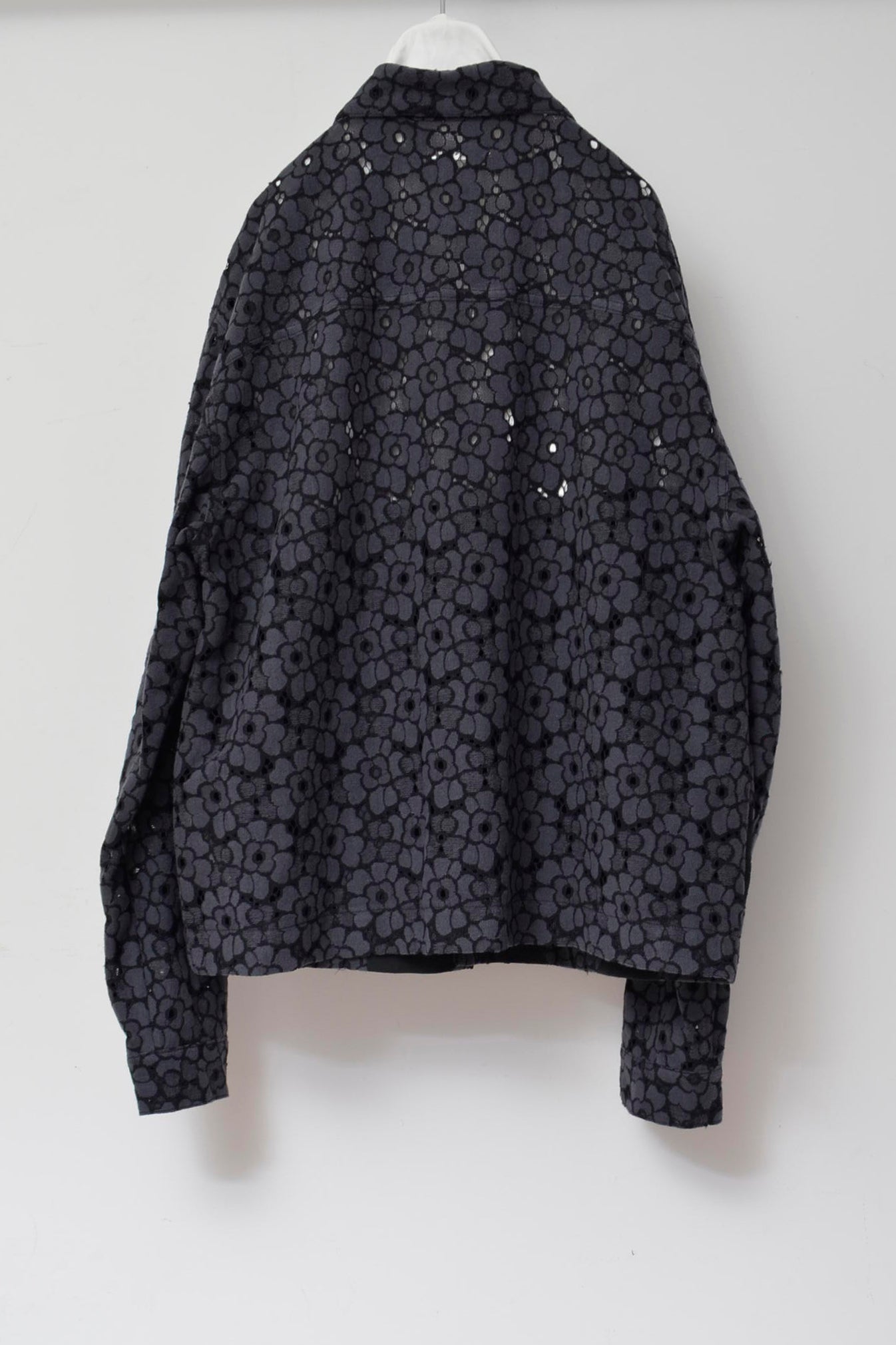 FLOWER LACE QUILTED WORK BLOUSON_BLACK