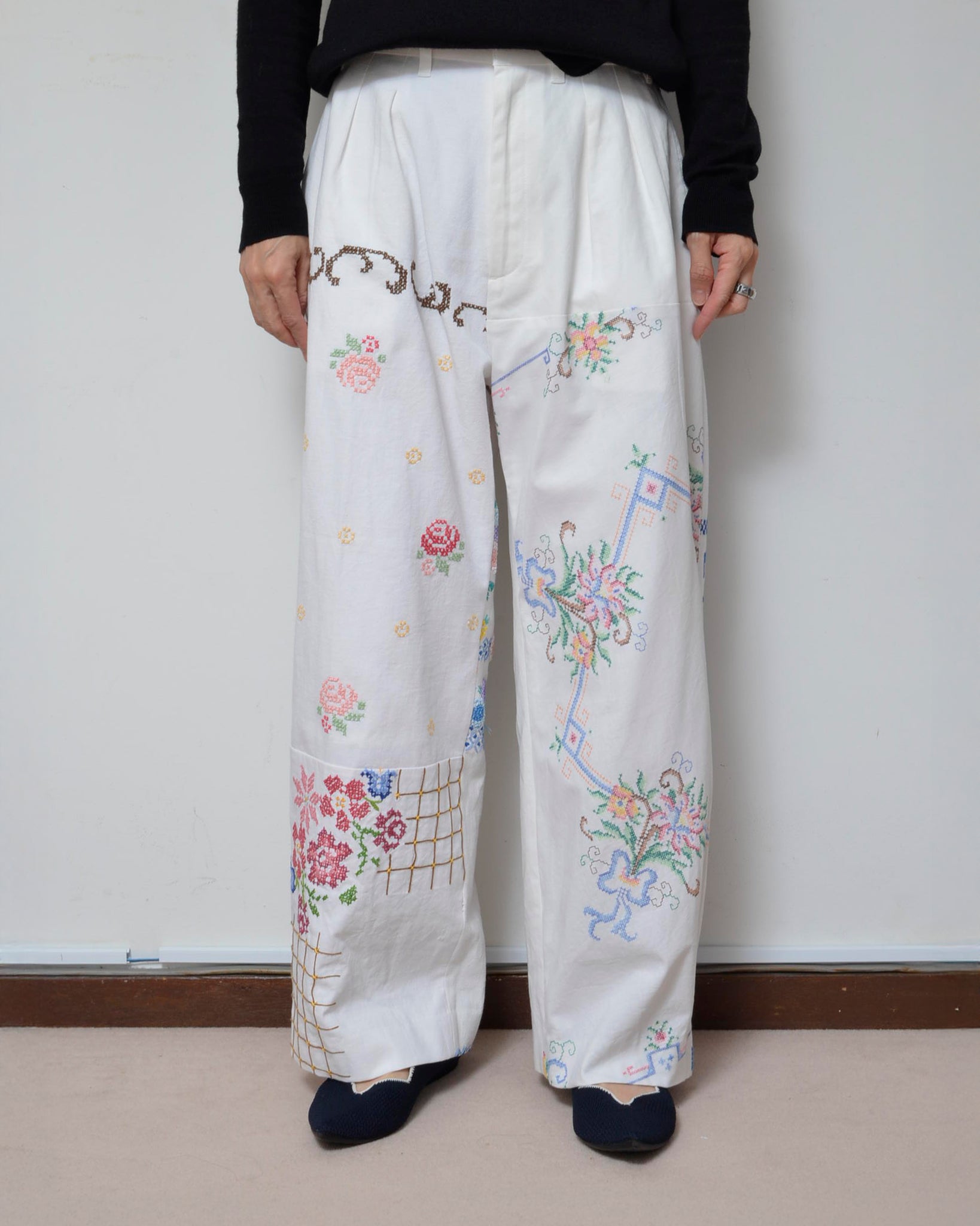 YEAH RIGHT!!定番品番のusedユーロテーブルクロスを使用したワイドストレートシルエット。