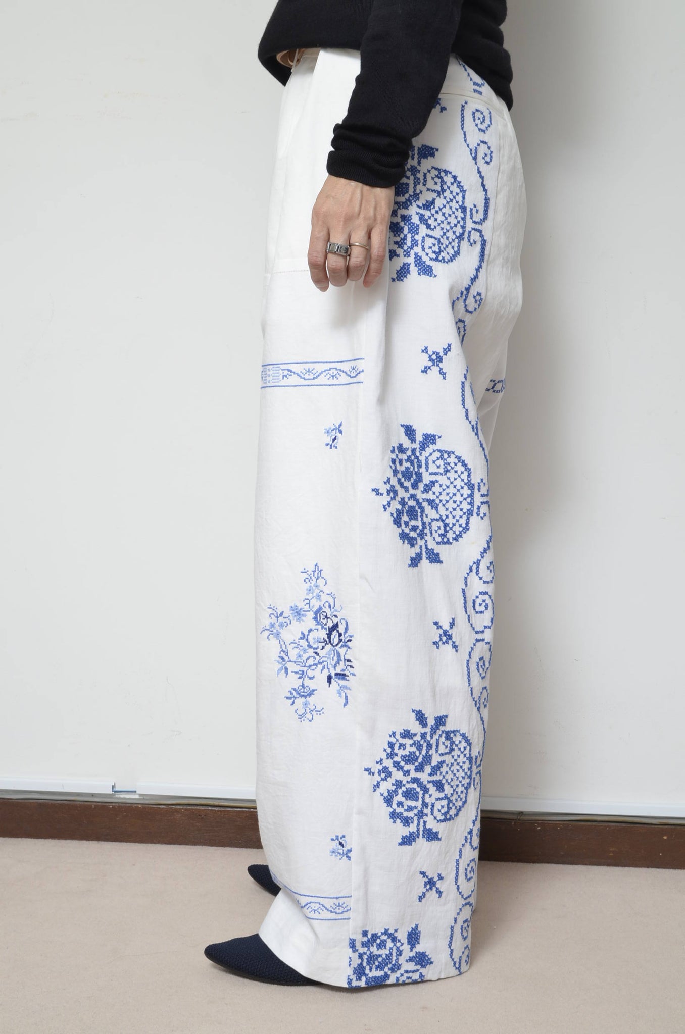YEAH RIGHT!!定番品番のusedユーロテーブルクロスを使用したワイドストレートシルエット。