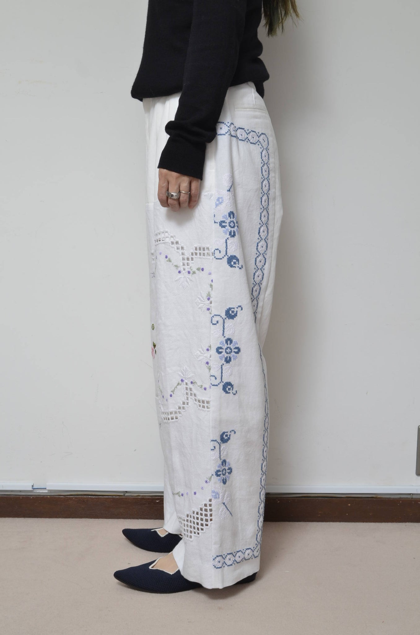 YEAH RIGHT!!定番品番のusedユーロテーブルクロスを使用したワイドストレートシルエット。