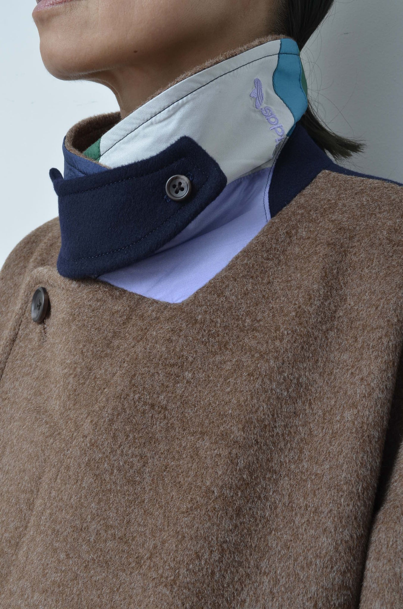 アルパカ70%、ウール30%の”MOON”と名付けられたデッドストック極上素材で仕立てたPコート。