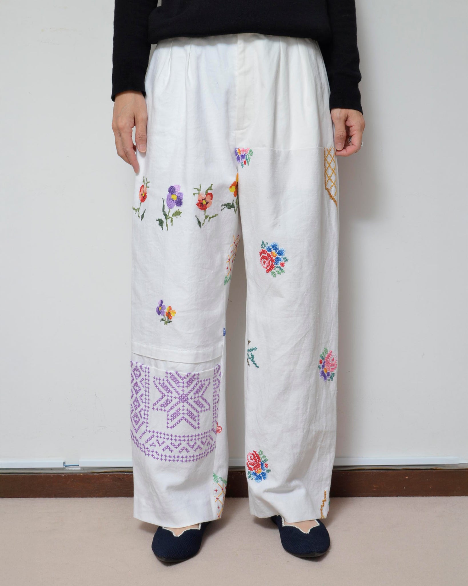 YEAH RIGHT!!定番品番のusedユーロテーブルクロスを使用したワイドストレートシルエット。