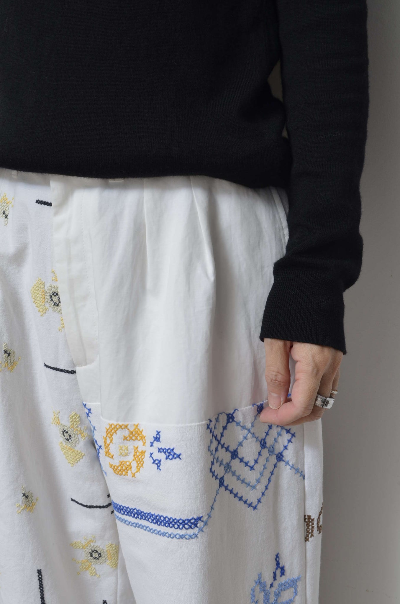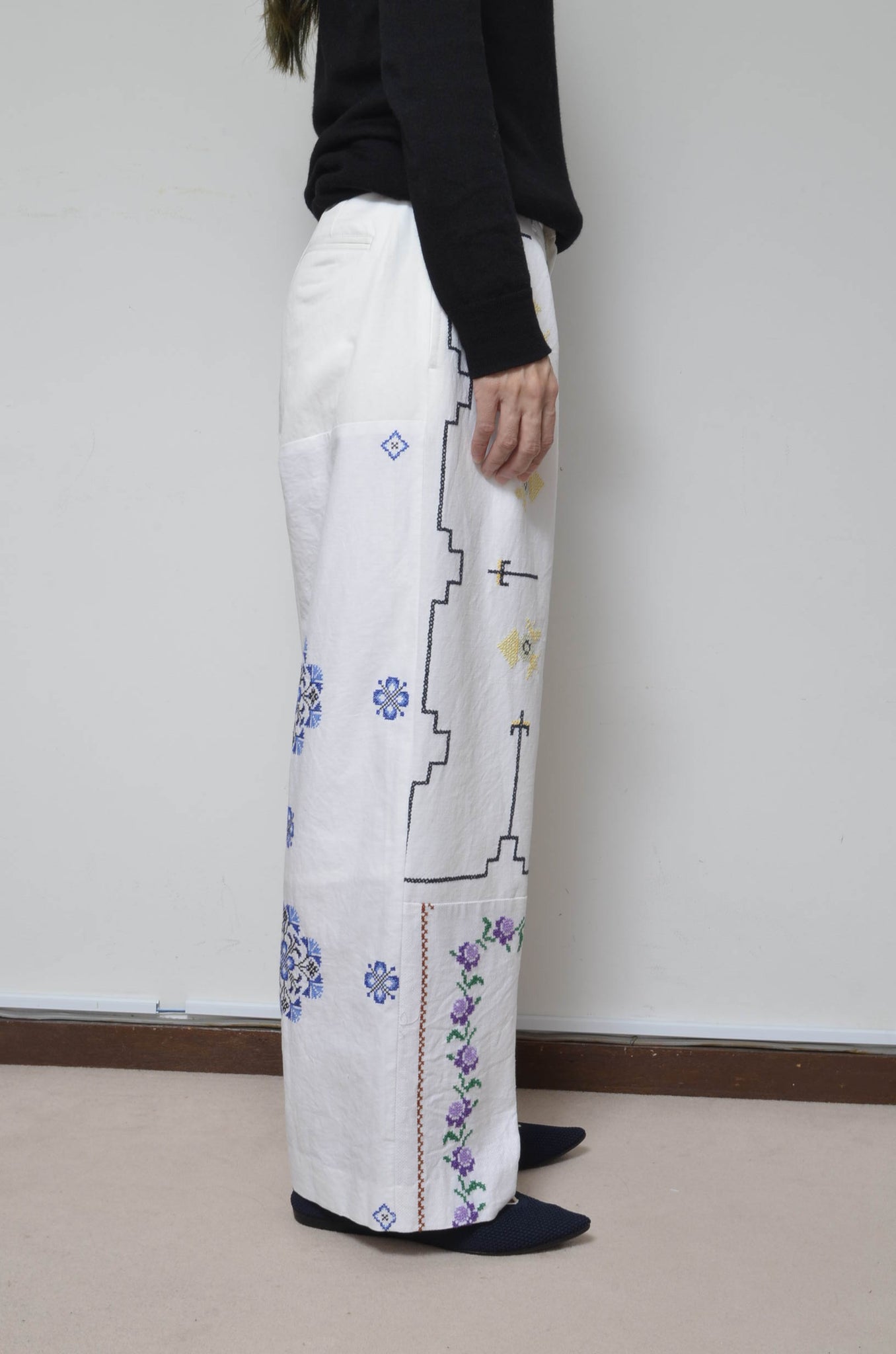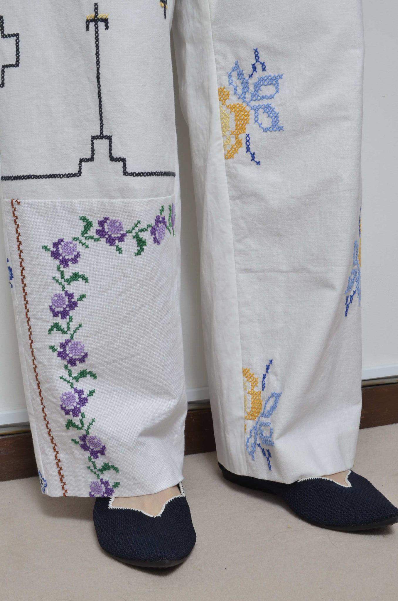 YEAH RIGHT!!定番品番のusedユーロテーブルクロスを使用したワイドストレートシルエット。