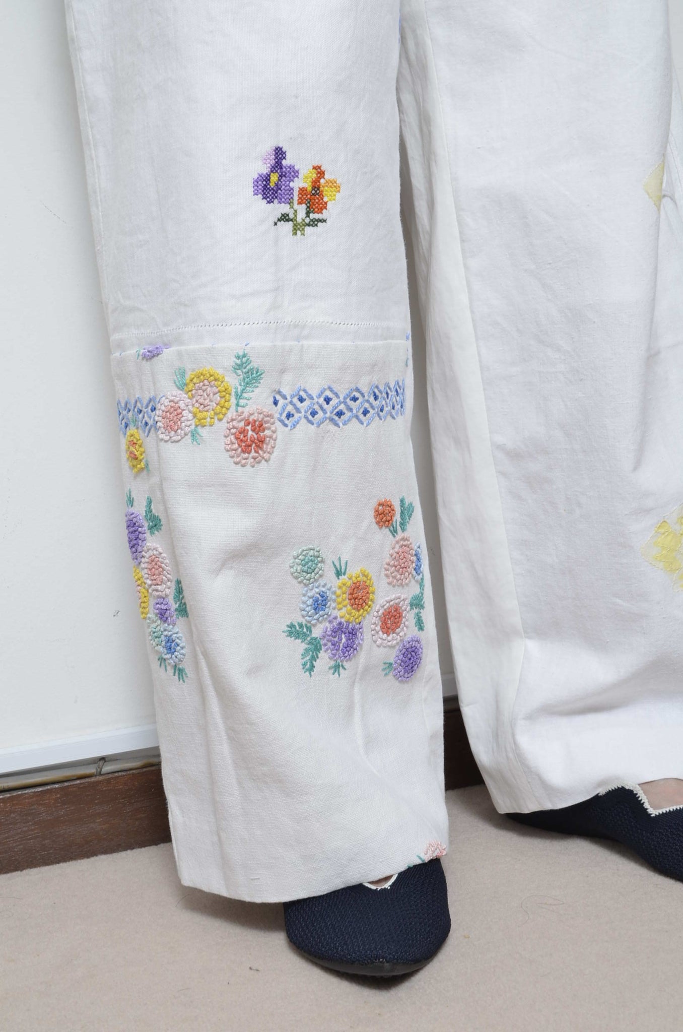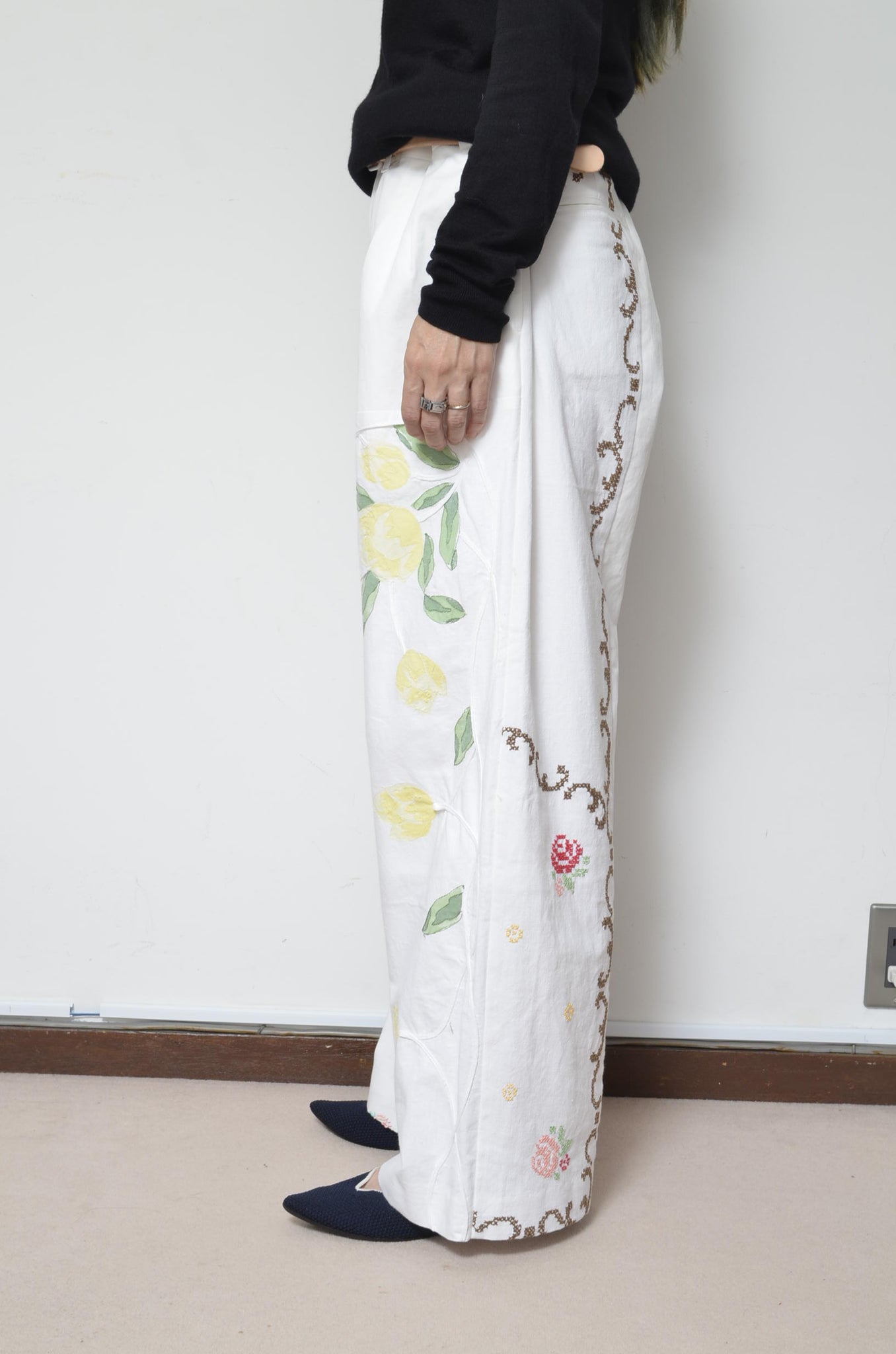 YEAH RIGHT!!定番品番のusedユーロテーブルクロスを使用したワイドストレートシルエット。