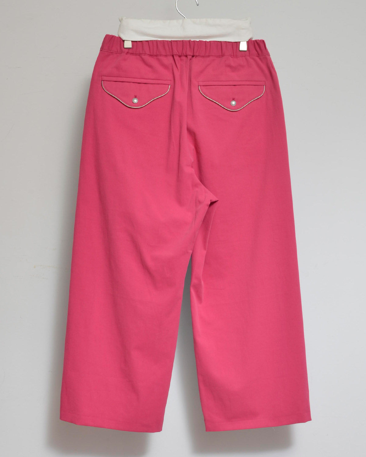 シルエットはゆったりとリラックス感があり、ウエストはゴム+スピンドル仕様で快適な穿き心地です。