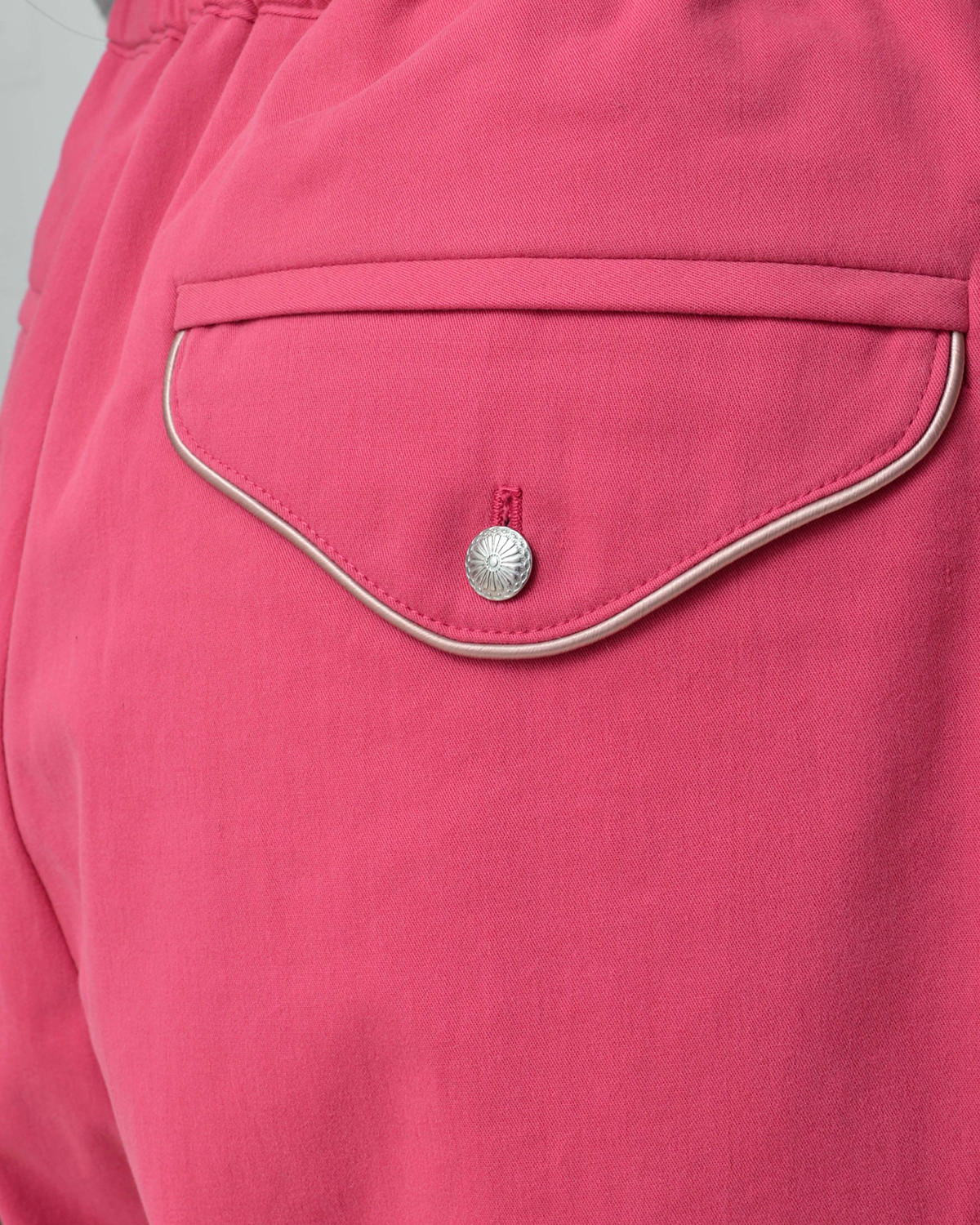 コードパイピングやコンチョボタンを配し、ウエスタンテイストを感じさせる仕上がりに。